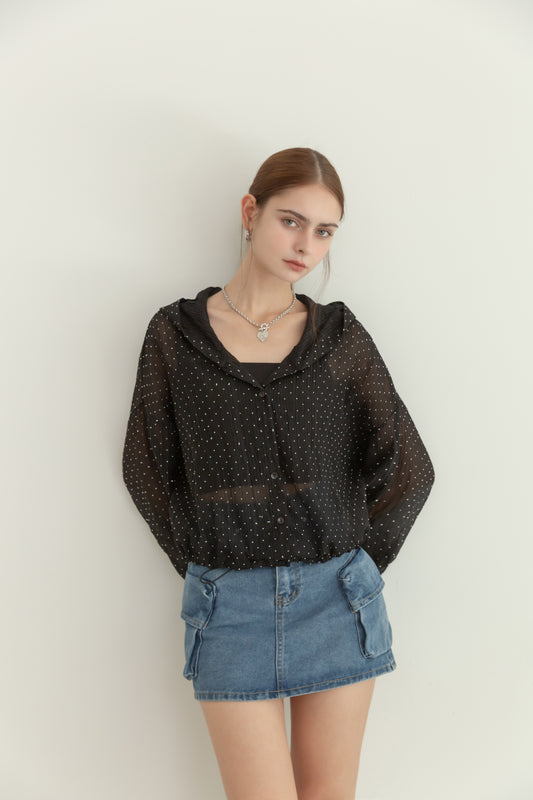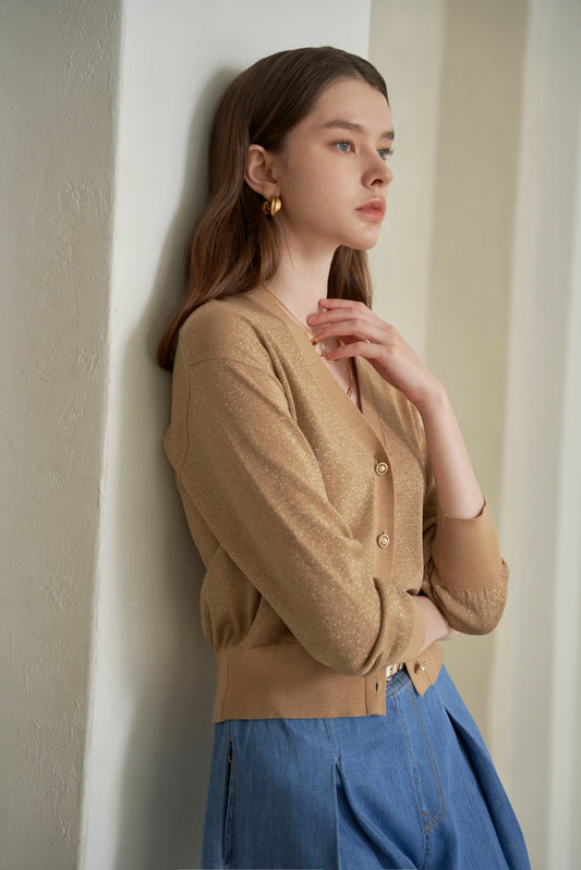 MIJU Glow gold button semi-crop knit cardigan - Gold